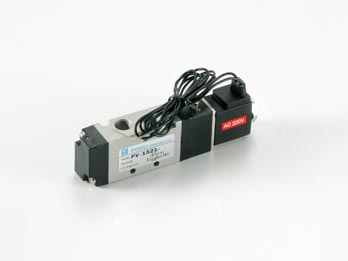 PV-150 電磁閥 (五方口) 產品規格 型號 PV-1521 PV-1522 PV-1532.42 接管口徑 (Rc) 1/8″ 位置數 五口二位置 五口三位置 使用流體 空氣 壓力範圍 (kgf/cm²) 1.5 ~ 8 2 ~ 7 有效斷面積 (mm²) 12 9 使用溫度 (°C) 0 ~ 60 容許電壓範圍 AC110V HZ/AC220V HZ/ DC24V (± 10%) 消耗電力 AC = 3.5VA / DC = 2.4W 絕緣等級 (°C) Class F 重量 (g) 140 175 200 氣壓回位,手動優先控制 線圈採用歐洲進口,耗電量低。