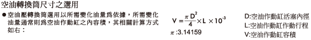 | 空油轉換桶缸徑 (mm) | Ø 40 | Ø 63 | Ø 80 | Ø 100 | |